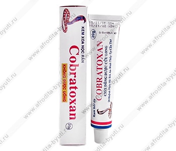 Вьетнамскую мазь Кобратоксан купить вы можете без опасений – она безопасна для человека. Несмотря на то что в состав входит змеиный яд, средство не вызывает даже незначительные побочные эффекты вроде раздражения или сыпи. Перед добавлением в крем Cobratoxan яд кобры подвергается специальной обработке. После этого он оказывает только положительный эффект: